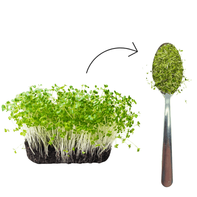 Nutritional value and shelf life begins to decrease the moment microgreens are cut from their roots. So we turn to the ancient process of dehydration, but instead of using heat, we dehydrate at cold temperatures to preserve the nutrients! This means even more nutritional value per serving, locked in nutrients, and a shelf life that outlasts any microgreen at the store. But you'll go through them faster than that!