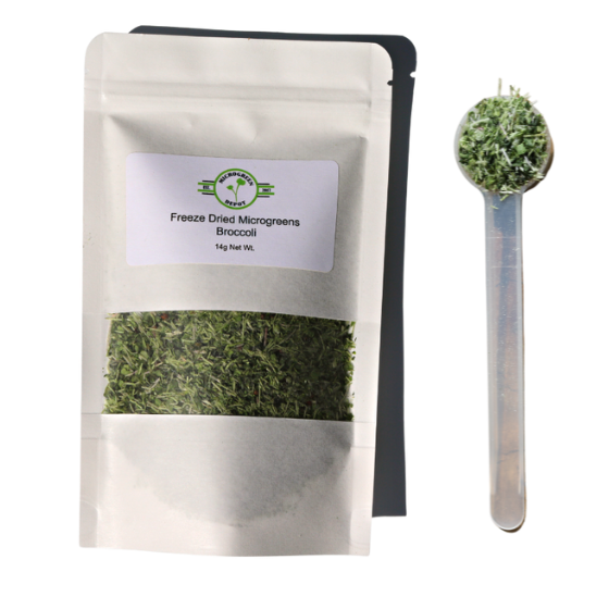 The moment microgreens are cut from their roots they begin losing nutritional density. Freeze drying prevents this. It preserves vital nutrients by dehydrating microgreens at freezing temperatures as soon as they're cut. Check out our FAQ down below.